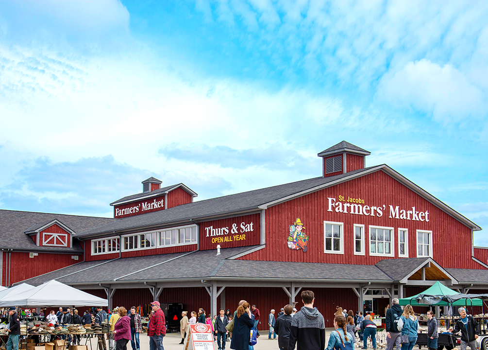 Located in the Township of Woolwich, the history of St. Jacobs is steeped in local Mennonite history. It has become a retreat for locals and visitors alike with the St. Jacobs Farmers’ Market, which is the largest year-round farmers’ market in Canada, as well as the Village of St. Jacobs, which has great shopping, restaurants, and a craft brewery. There are also many roadside stands where visitors can get fresh produce, meat, eggs, cheese, honey, maple syrup, and much more.